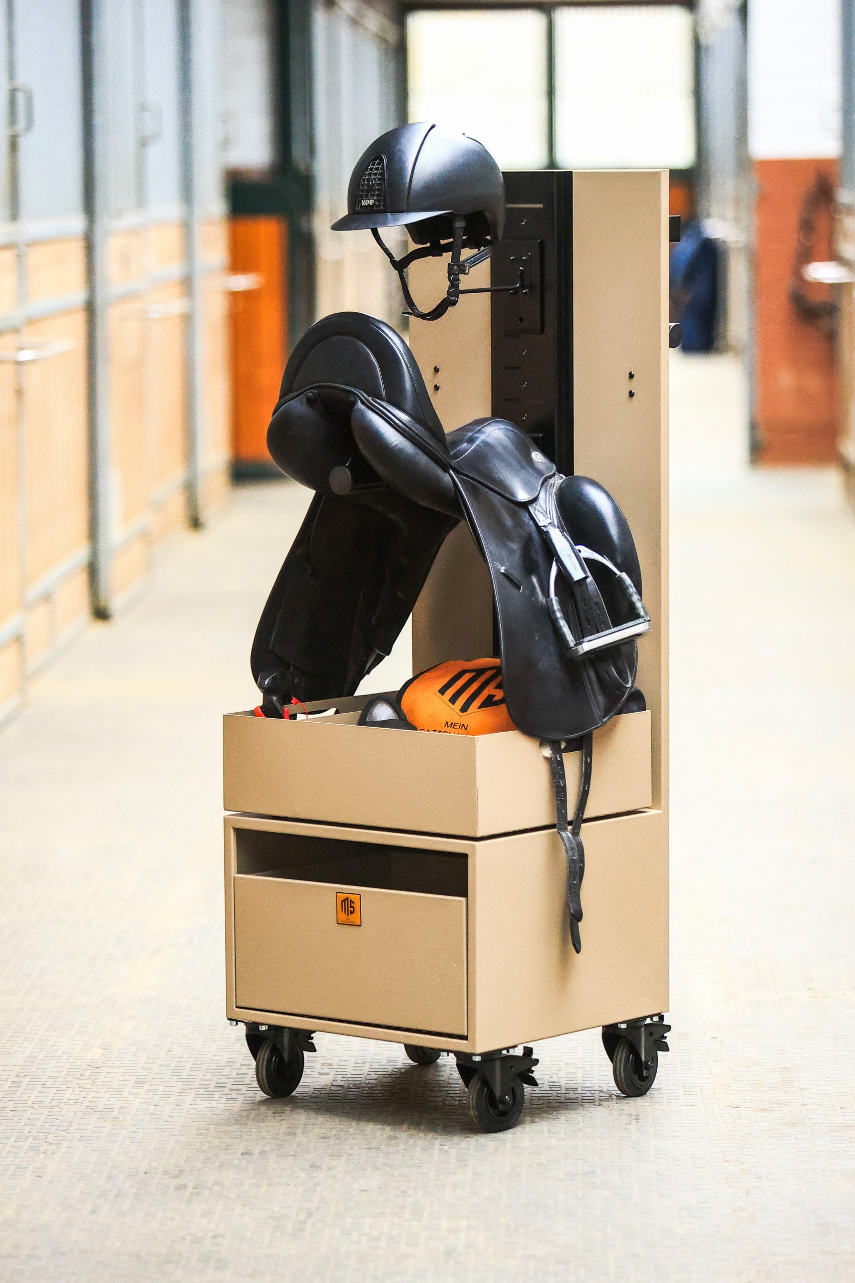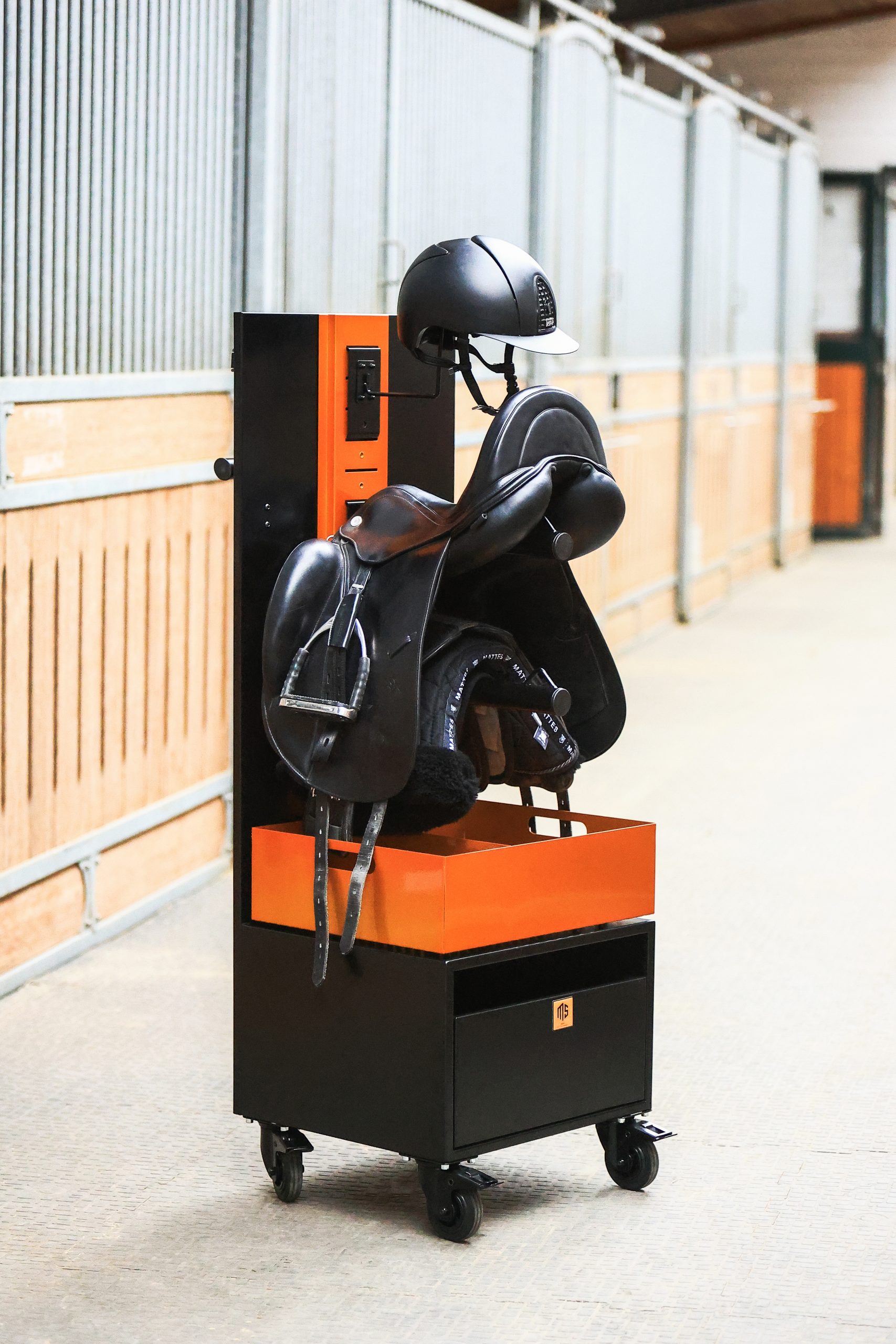 Mit perfekten Abmaßen die in deinen Stallschrank passen, ohne jedoch sperrig im Raum zu stehen, hast du alles was du brauchst direkt an einem Ort – und schiebst es hin, wo du es brauchst. Kinderleicht.